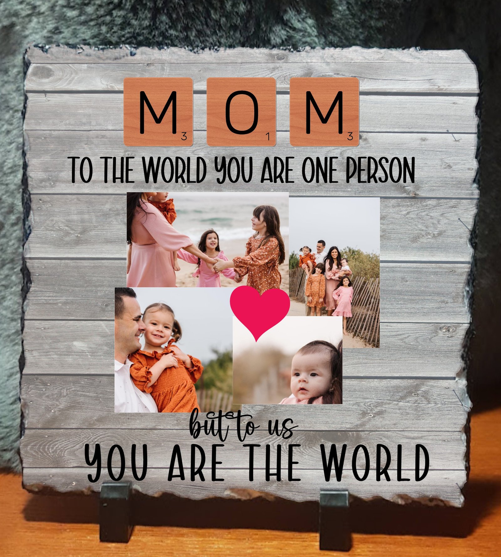 Introducing our exquisite Personalized Photo Slate, Mom, to the World you Are One Person but to us You are the World, the perfect Mother’s Day gift to capture and cherish unforgettable memories with Mom. Crafted with elegance and durability, this slate showcases your chosen photograph in stunning detail, bringing your special moments to life with a timeless touch. Whether it’s a candid snapshot of laughter-filled family gatherings or a serene scene from a cherished vacation, this unique slate transforms any image into a beautiful keepsake that Mom will adore. Personalize it further with a heartfelt message or meaningful date, adding an extra layer of sentiment to this already treasured gift. With its sleek design and enduring quality, our Personalized Photo Slate is sure to become a cherished centerpiece in Mom’s home, a constant reminder of the love and joy she brings to your life.