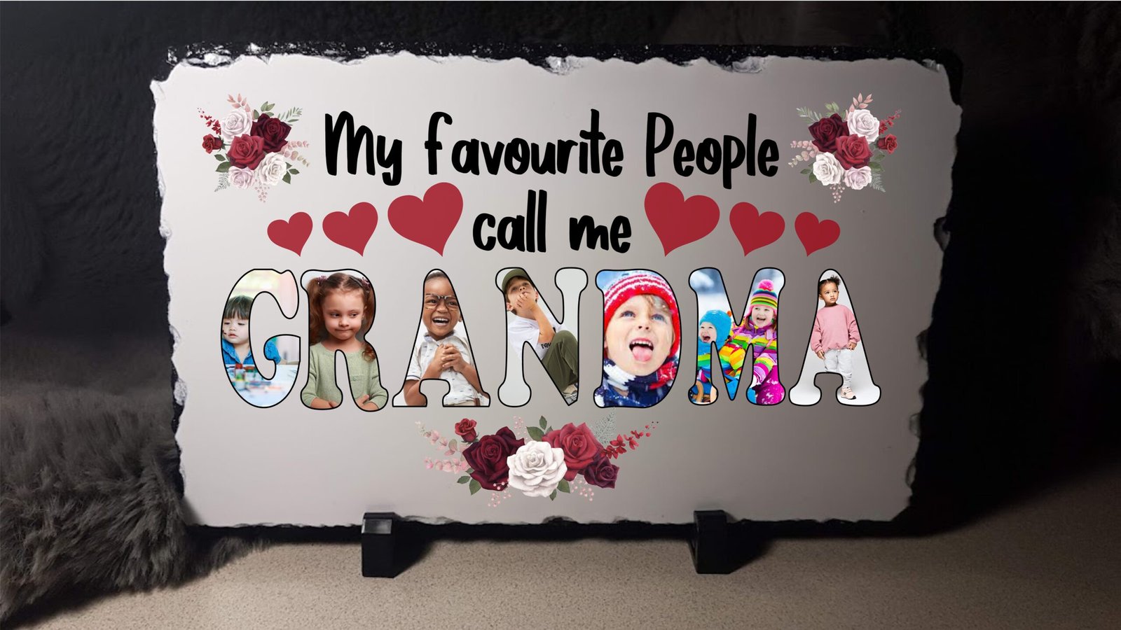 Introducing our exquisite Personalized Photo Slate, My Favourite People call me Grandma, the perfect Mother’s Day gift to capture and cherish unforgettable memories with Mom. Crafted with elegance and durability, this slate showcases your chosen photograph in stunning detail, bringing your special moments to life with a timeless touch. Whether it’s a candid snapshot of laughter-filled family gatherings or a serene scene from a cherished vacation, this unique slate transforms any image into a beautiful keepsake that Mom will adore. Personalize it further with a heartfelt message or meaningful date, adding an extra layer of sentiment to this already treasured gift. With its sleek design and enduring quality, our Personalized Photo Slate is sure to become a cherished centerpiece in Mom’s home, a constant reminder of the love and joy she brings to your life.