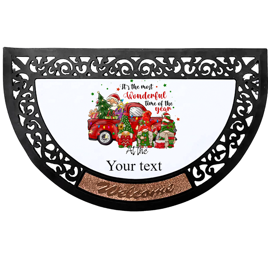 This large recycled rubber Christmas gnome doormat, featuring a personalized sublimation insert, brings a festive and unique touch to your doorstep. The insert displays a cheerful gnome in holiday attire, customizable with your name or message, while the rubber backing ensures durability and slip resistance. The sublimation process creates vibrant, fade-resistant colors, making it perfect for outdoor use. Eco-friendly and charming, this mat is easy to clean and adds a personalized, welcoming vibe to your holiday décor while withstanding the elements.