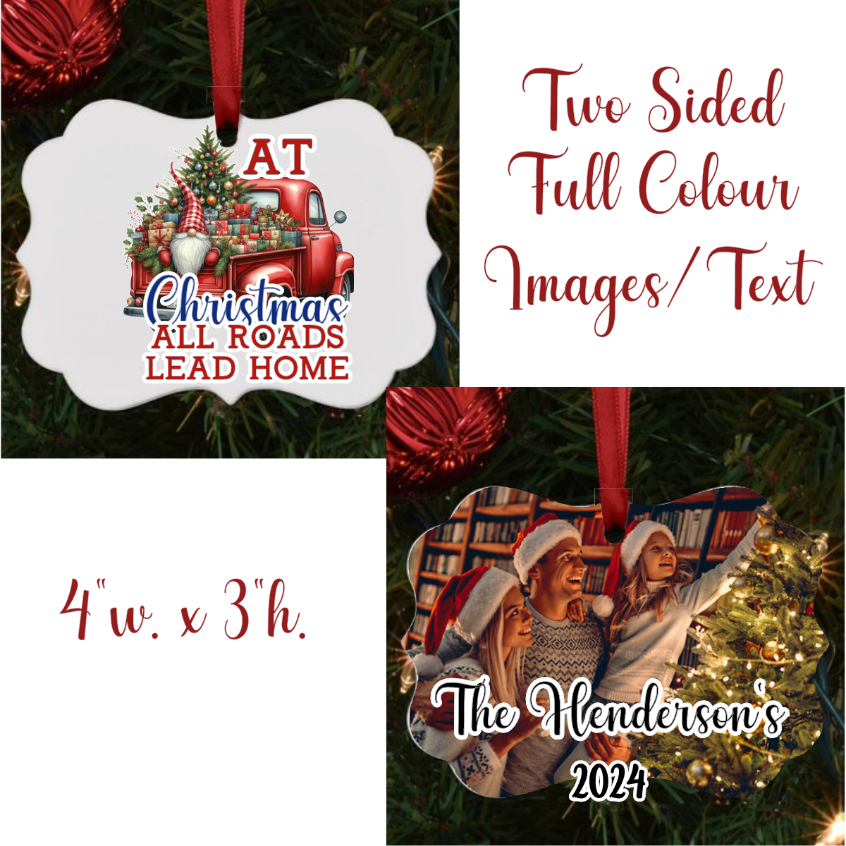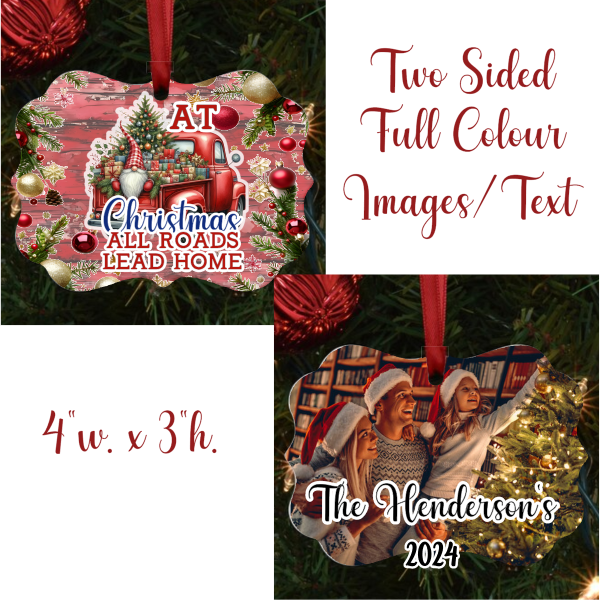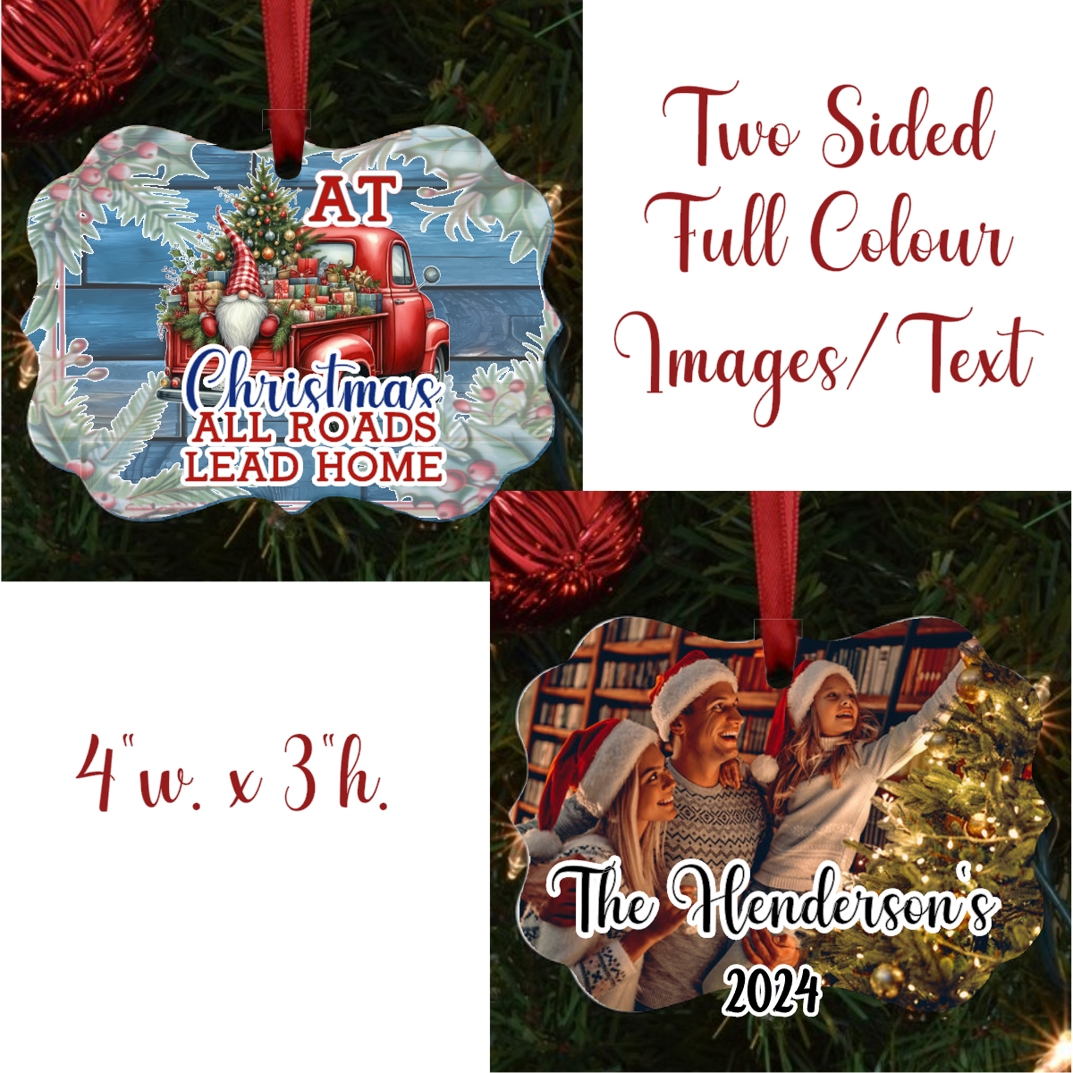 Celebrate the magic of Christmas with our personalized “All Roads Lead Home” ornament, featuring an adorable gnome design. This Benelux shaped, sublimated ornament is crafted with care to bring warmth and charm to your holiday decor.